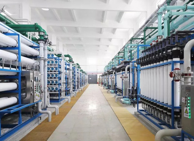 丹金溧漕河河水→自清洗過(guò)濾器→超濾裝置→一級(jí)反滲透裝置→二級(jí)反滲透裝置→EDI